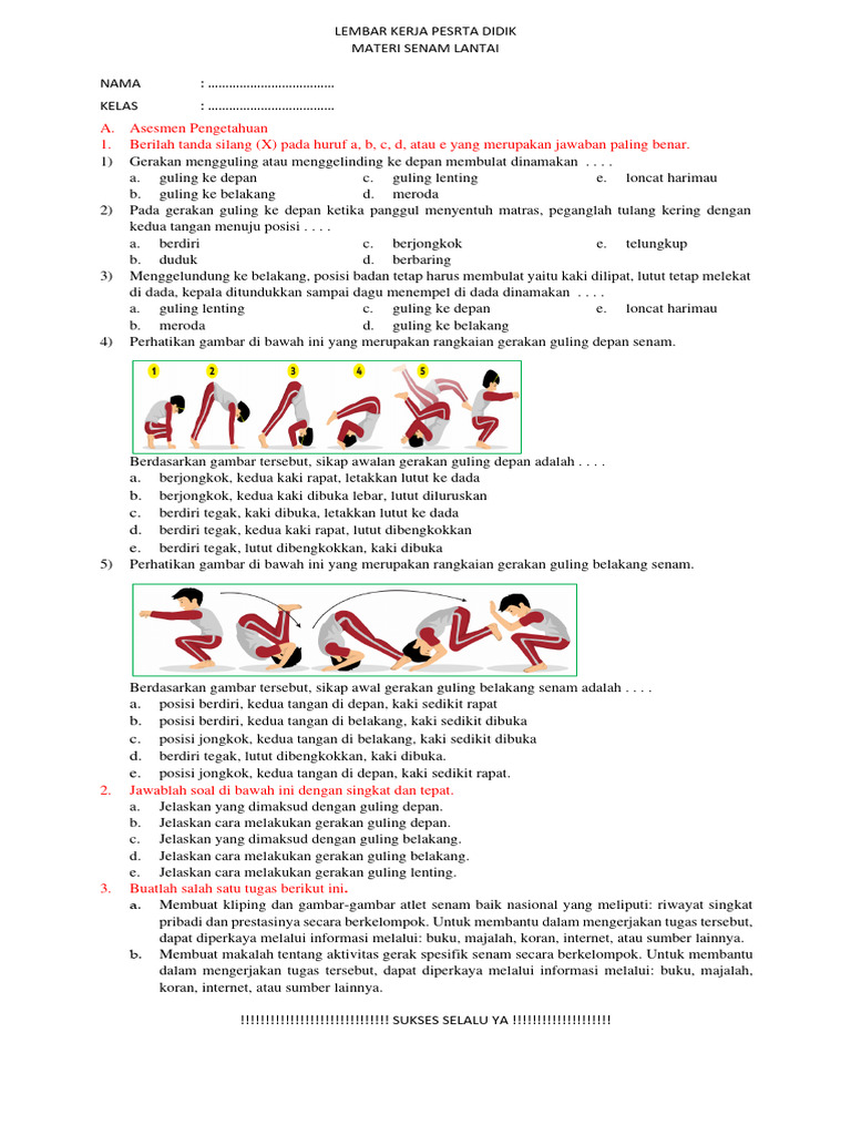 Artikel ini akan menyajikan serangkaian contoh soal pilihan ganda dan esai yang mencakup berbagai aspek senam lantai, sesuai dengan cakupan materi yang umumnya diajarkan pada siswa kelas 10 semester 2. Soal-soal ini dirancang untuk menguji pemahaman konseptual, kemampuan analisis, serta aplikasi praktis siswa terhadap materi senam lantai.