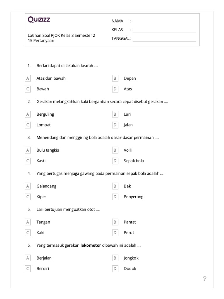 Artikel ini hadir sebagai panduan lengkap untuk latihan soal PJOK kelas 3 semester 2. Kami akan membahas berbagai materi yang diujikan, memberikan contoh soal, dan tips belajar efektif. Dengan memahami struktur soal dan berlatih secara teratur, siswa akan lebih siap menghadapi ujian dan meraih hasil yang memuaskan.